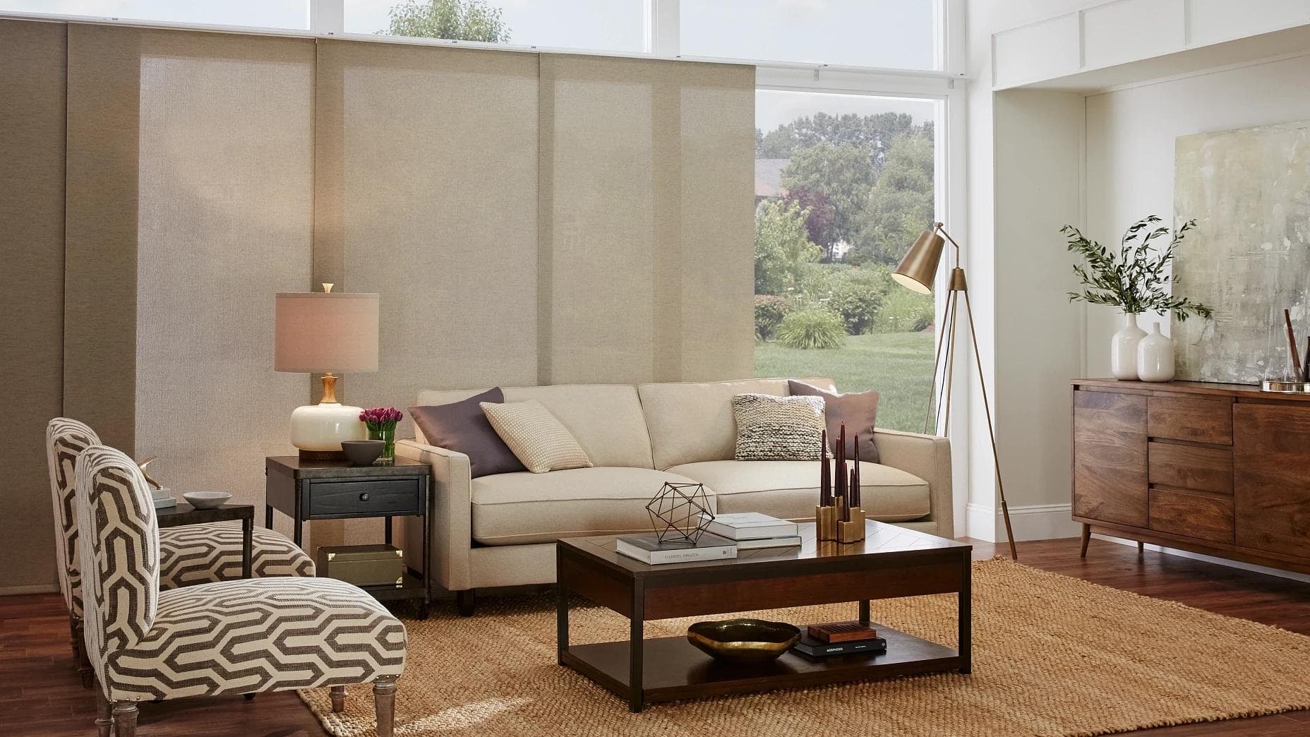 Sleek, gliding panel track shades give you a range of options to cover sliding glass doors or wide windows. Just let it slide.