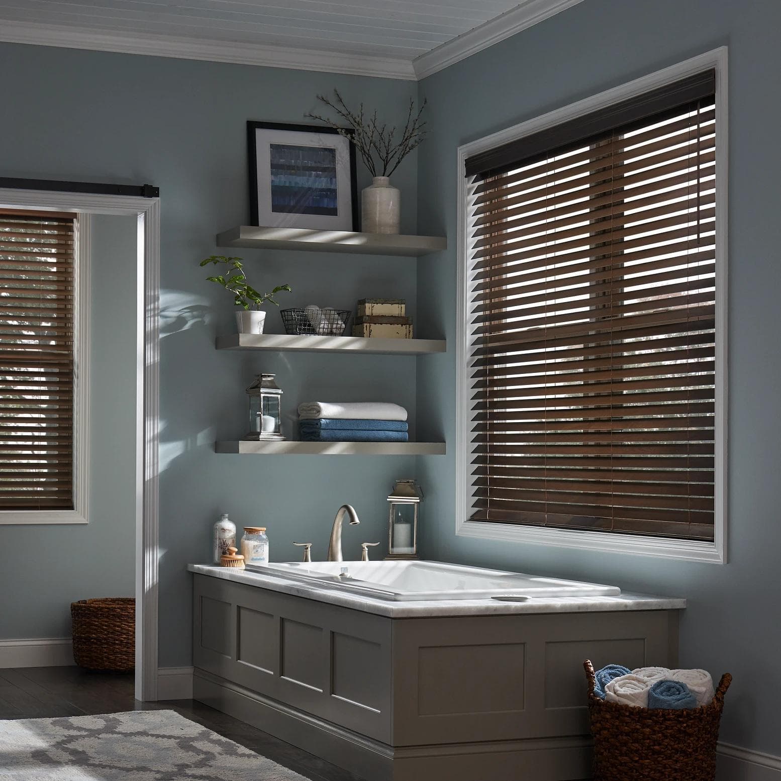 There are so many choices of window coverings for your entire home, including the bathroom. From blinds, shades, shutters, and more, there are several new styles and colors to choose from to make your bathroom feel customized and private.