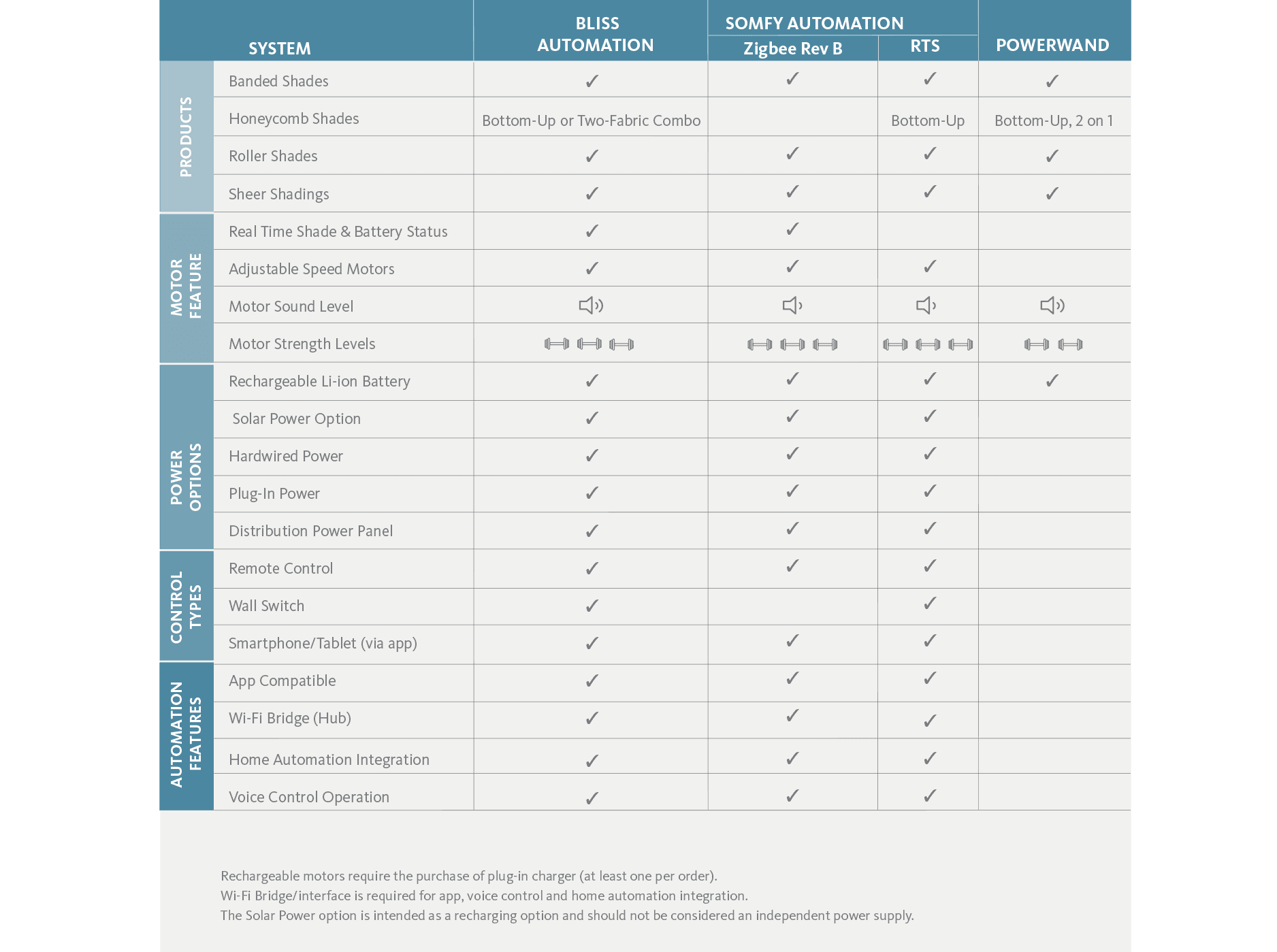Enjoy the benefits of purposeful ease! Enjoy a wide range of motor and power options for narrow and wider shades. Each is designed to integrate seamlessly into home networks for automation that can be operated via App or voice control.