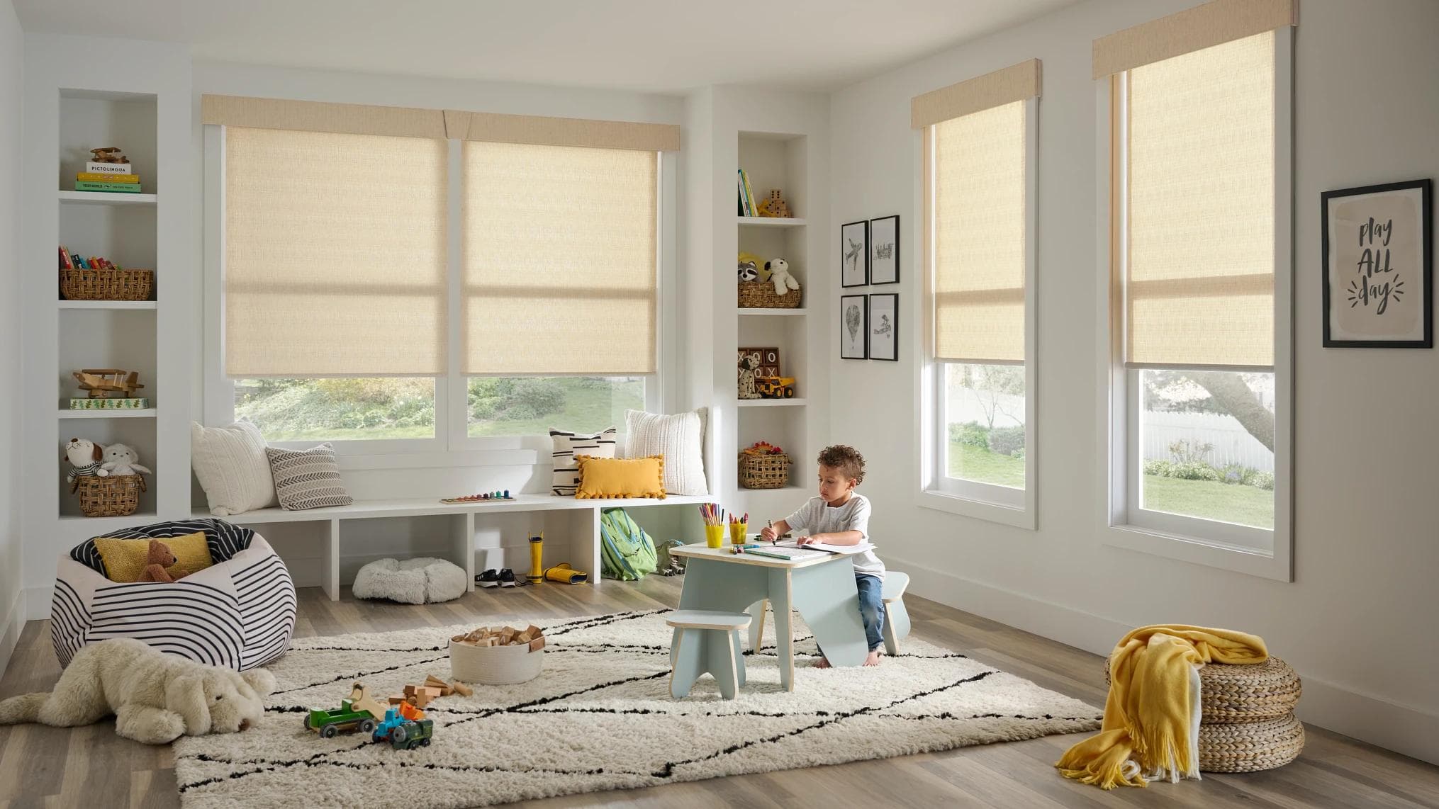 Chez Alta, nous pensons qu'offrir un environnement ultra-sécurisé à votre famille doit être une priorité absolue. Nos options en matière d'habillages de fenêtre sécuritaires pour les enfants sont testées et examinées au plus haut niveau afin d'éviter tout risque d'accident. Les stores motorisés sont également d'excellentes options à prendre en compte pour les habillages de fenêtre sans danger pour la chambre d'enfant. Une simple pression sur un bouton suffit pour que le moteur fasse le travail à votre place. Ces stores peuvent également être commandés à distance ou à l'aide de la technologie sans fil. Avec plusieurs options de stores motorisés, vous êtes sûr de trouver celui qui convient le mieux à votre maison.